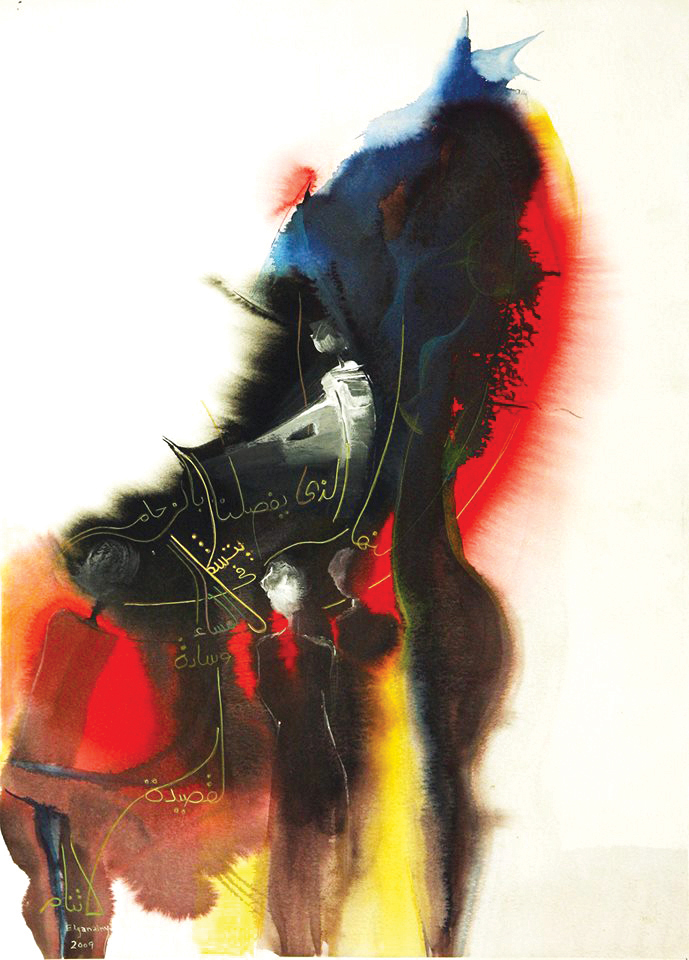 ممارسة العمل الإبداعي تشكيليًّا تعتمد على ماهية اللغة البطل، وماهية لغة التشكيل هي اللون – الخط – الكتلة – الفراغ – المساحة. أي جميع العناصر المرئية بصريًّا، لذا سيكون البطل دائمًا بصرِيًّا، رغم إمكانية اشتباكه مع الموسيقا أو الشعر. وبالنسبة لي فإنني أعتمد الجسد الإنساني، أو بمعنى أدق، الإنسانَ بطلًا للغتي التشكيلية، أحمله بكل المضامين التشكيلية سواء أكانت لونًا أو خطًّا أو مسافةً أو كتلةً أو فراغًا، لكن الهم الإنساني يكون حافزًا لطاقتي التشكيلية، وأنا ممن يؤمنون بموسيقا اللون، وبالتالي فإن لغة اللون عندي تعتمد كلية على فهمي الواعي للعلاقات اللونية سواء أكانت التضاد أو الهارموني أو غيرهما، المهم عندي أن أرى الموسيقا من خلال اللون، وهذا يمنح العمل جاذبية للتلقي، ويأخذ المشاهد إلى أبعاد أخرى ترتبط جميعها رغم مضامينها المختلفة بجماليات المشهد، ولكي أحقق هذا كان لا بد لي أن أمارس التشكيل بعيدًا من صناديق المدارس التشكيلية الجاهزة، فأنا أومن بحرية التعبير وحرية استخدام الفنان للغته الخاصة؛ إذ ليس من الضروري أن يكون واقفًا داخل صندوق مدرسة معينة، ويغلق على نفسه هذا الصندوق، من هنا كانت تجاربي مزجًا بين مدارس تشكيلية مختلفة، فالتجريد امتزج بسوريالية اللون، والتعبيرية امتزجت بدراما التجريد، وهكذا.
