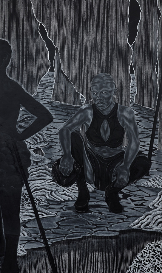 يبدو العمل الفني لـ«توين أوجيه أودوتولا» بعنوان «طبقة الـ«إشو» الحاكمة» من النظرة الأولى أنه صورة تجسد مفهوم السيادة/ السلطة. تشعر للوهلة الأولى أن هذه الأرض قد خُلقت على شاكلتك، بل إن كل شخص داخلها يخضعُ لك بطريقة ما. وبنظرة متأنية، تحيلنا إلى تصوير كاسبر دايفيد فريدريتش لسيادة التنوير. في لوحته الشهيرة «واندِر فوق بحر الضباب». لاحظ القدم اليسرى نفسها المرفوعة، حالة التأمل نفسها المستمدة من طاقة السكون الجاثم على كل شيء، محاكاة الشعر، والهيئة، حتى طراز التمويجات المسيطرة على المشهد كله. كل ما في الأمر أن الرجل ذا الرأس الأحمر الذي نراه من ظهره ممسكًا بعصًا في يده، قد استُبدل به امرأة زنجية تواجهنا في ردائها الشعبي، السيناريو نفسه ولكن بالعكس.