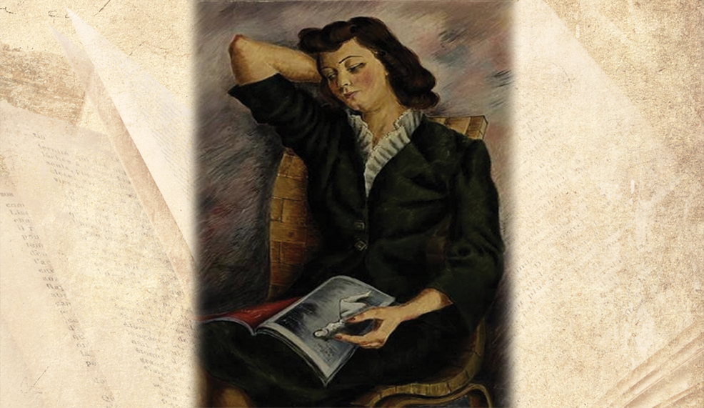 سيدة شابة، فتاة ربما لها من العمر عشرون عامًا، جالسة في كرسي وتقرأ كتابًا. أو كانت توًّا تقرأ بجدية، وهي تتأمل الآن فيما قرأت. يحدث هذا في كثير من الأحيان، أن على الشخص الذي يقرأ أن يتوقف، عندما تخامره بحدة أفكار متنوعة تتعلق بالكتاب. القارئة تحلم، ربما تقارن موضوع الكتاب مع تجاربها حتى الآن، هي تفكر ببطل الكتاب، فيما تكاد تتخيل نفسها بطلته. لكن الآن إلى الصورة، إلى أسلوب رسمها. الصورة غريبة، والرسم فيها مرهف ورقيق؛ لأن الرسام، في جو من الجرأة الجميلة، تجاوز حدود المألوف وشق طريقه إلى الحرية عبر واقع منحاز.