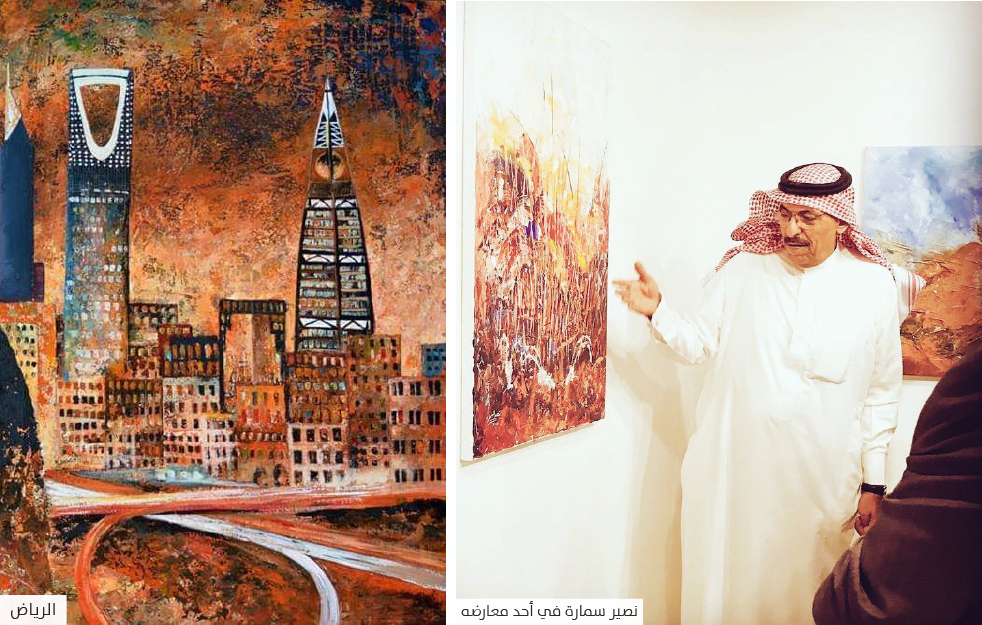 نسوق هذا الكلام ونحن نتحدث عن تجربة الفنان التشكيلي، الذي حمل مسؤولية خلق وإدارة علاقات جمالية وتشكيلية بـ«اللغة البصرية» بين الإنسان وما يحيط به من عناصر… وقد وجد الفنان السمارة في الفن على اختلاف تقنياته (الرسم والتصوير، والنحت، والخط العربي، والنسيج، والنقش، وسبك المعادن) متنفسًا للتعبير عن عشقه لوطنه، فسجل بريشته وضربات سكينه بألوان الأكريليك تفاصيل البيئة العربية السعودية، مثل: الصحراء والطبيعة الغناء، والتراث المعماري والموروث الفني، فجاءت أعماله الفنية ممزوجة بأحاسيس خاصة، بل إن دفق الأحاسيس ورقة الانفعالات ونبل العواطف، برزت في مختلف الموضوعات التي صورها الفنان.