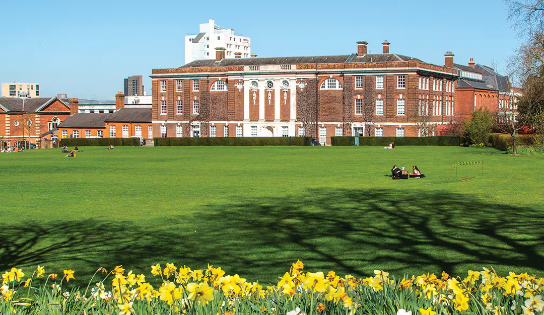 مبنى الكلية الجميل، من الطراز الإنجليزي، مشيّدٌ بالآجُرّ الأحمر، وقد طُلِيَتْ أُطُرُ النوافذ باللون الأبيض، وتحيط المبنى مروجٌ خضراء زمردية، كجميع المروج الإنجليزية التي تسرُّ الروح، وتمنح المرء فرصةً الاغتسال من الجو الرمادي المكفهرّ في المدينة. يكسو المبنى بطوابقه الثلاثة نباتُ اللبلاب الإنجليزي؛ فيصبح المرء في عالم نضر من الخضرة اليانعة التي تكتمل فتنتها بوجود المروج الشاسعة وأشجار الكستناء العملاقة على مسافات متباعدة. كنّا نفترش المرج في أوقات الراحة أو نلعب الكرة الطائرة، أو ننفرد لقراءة رواية لِـ(آيريس مردوخ) أو (وليم غولدنغ) أو نناقش أحد الدروس أو نختلي في مكتبتها العريقة.