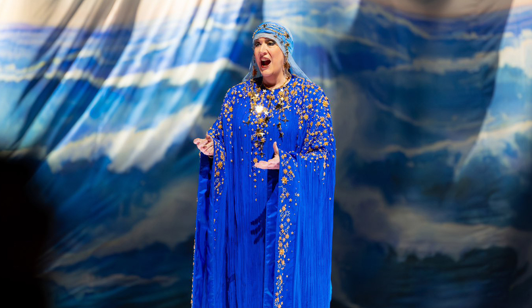 في الأوبرا، لم تكن زرقاء اليمامة مجرد امرأة حادة البصر، إنما كانت أيضًا ذات بصيرة عميقة، لا تخطئها النبوءة، كانت رائية كبيرة في معنى أدق. ولقد تألقت المغنية الأوبرالية سارة كونولي، وهي تتوشح بالأزرق، في استكناه أعماق هذه الشخصية، مستلهمة حكمتها ووقارها، بذلك الأداء المهيب والفاتن.