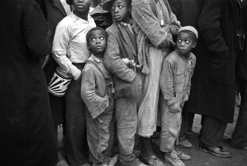 على أي حال، إنّ جزءًا من موهبة الفوتوغرافي ينبغي أن تبدو متجسدة بين الناس. فبإمكانكَ أن تنجزَ عملًا رائعًا إذا عرفتَ كيف تُفْهِم الناس طبيعة ما تعمله وتُشعرهم بالرضا عنه، وبإمكانك أن تنجز عملًا بائسًا إذا جعلتهم في حالة دفاع، يجدون أنفسهم فيها في البداية. عليكَ أن تخرجهم من سلوكهم الدفاعي وتجعلهم يشاركون. كان آجي جيدًا جدًّا في هذا. تحركنا معًا باتجاه بعض العائلات البعيدة جدًّا في أماكنها من بعضها، لكنها كانت عائلات من المزارعين المتطابقين في عيشهم مرحلة الكساد العظيم، في وقتٍ انغمسَ كلُّ شيء بالفقر. لم يكن لديهم بِنس واحد. كانوا في حالة بؤسٍ فظيعة، لكنهم متساوون؛ لأنَّ الجميع كان هكذا. وإني أفترض، من دون أن أقصد، أنّ ما كنتُ أعمله إنما هو تصويرٌ للفقر الإنساني. لم يكن بإمكاني غير ذلك. كنا جميعًا نعيش هذا الواقع. الجميع كان يائسًا. وإني لأجد هذا الأمر صعبًا جدًّا عند وصفه كما كان وقتذاك.