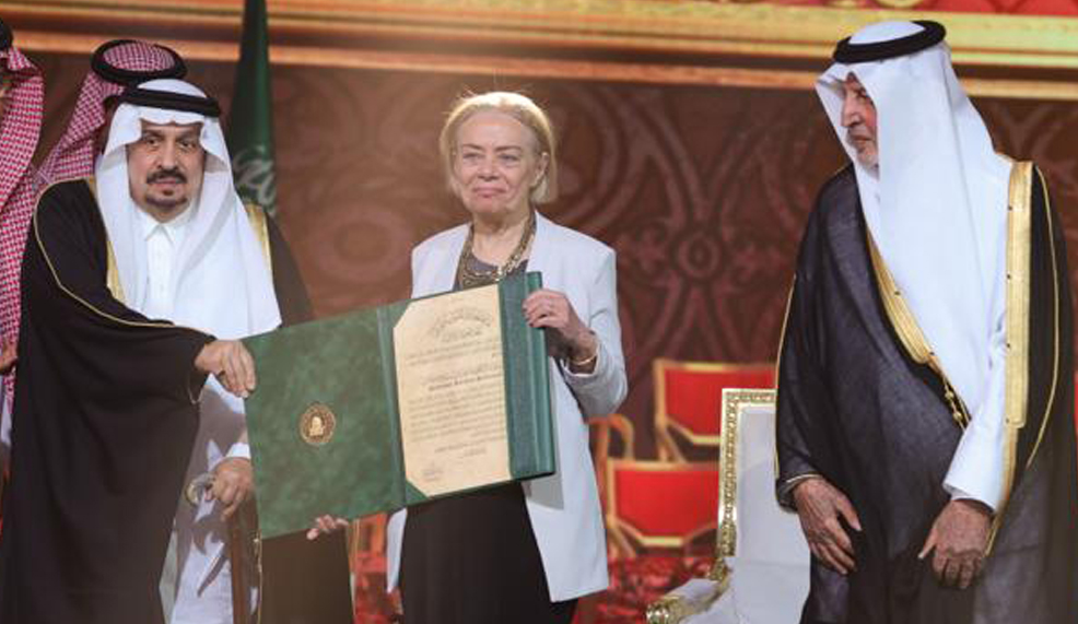 أما جائزة اللغة العربية والأدب، التي كان موضوعها: دراسات الأدب العربي باللغة الإنجليزية، فكانت مناصفة أيضًا بين البروفيسورة سوزان ستيتكيفيتش، الأستاذة في جامعة جورج تاون بالولايات المتحدة الأميركية، وذلك لامتلاكها مشروعًا نقديًّا علميًّا تمثل في بحوثها حول القصيدة العربية في عصورها المتعاقبة، وتميزها في قراءة النص الشعري في سياق نظري محكم، ومحاولة تجديد المنظور النقدي للقصيدة العربية الكلاسيكية.